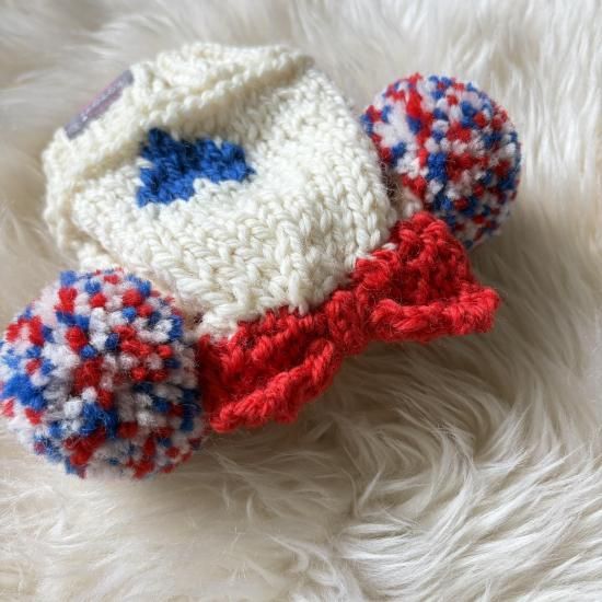ポンポン耳…オフホワイト、レッド、ブルーのMix
